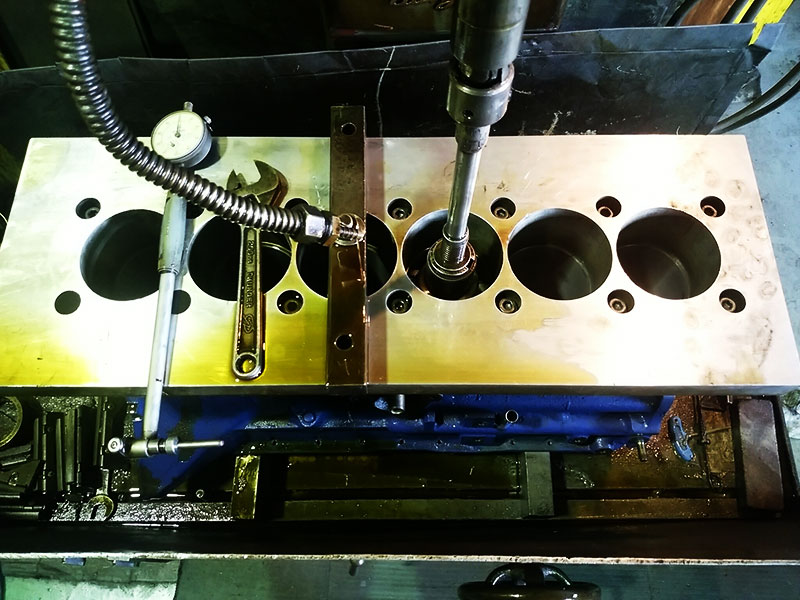 今時珍しい日産のL型です。何年ぶりでしょうか? ダミーヘッドを取り付け後ボーリング作業を終了し、ホーニング作業にかかっているところです。この様な旧車も承ります。